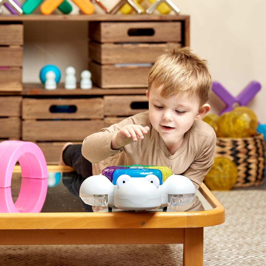 Podpora speciálních potřeb: Tento robot je také skvělou pomůckou pro děti se speciálními potřebami, podporuje rozvoj jemné a hrubé motoriky a pomáhá dětem porozumět vztahu příčiny a následku.