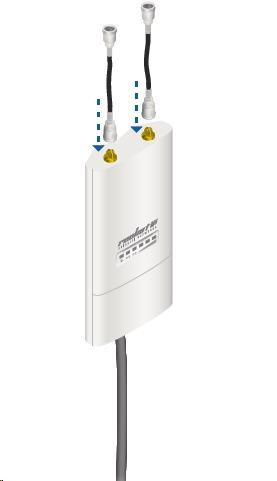 Jedná se o robusní řešení 13dbi všesměrové antény pro přístupové body pracující v pásmu 5GHz a využívajících standardu 802.11n v kombinaci s technologií MIMO. Anténa disponuje dvěma RSMA-female konektory. Součástí dodávky jsou dva voděodolné RSMA pigtaily pro propojení s jednotkou Rocket M5, držák pro tuto jednotku a montážní sada na stožár, viz. obr.