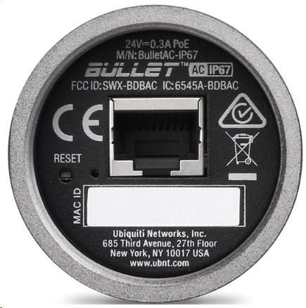 Jednotka disponuje jedním Gbit ethernetovým portem, který dovoluje využít všech možností normy 802.11ac. Napájení probíhá přes 24V/0,5A DC POE adaptér, který stejně jako u předešlých bulletů není součástí balení.