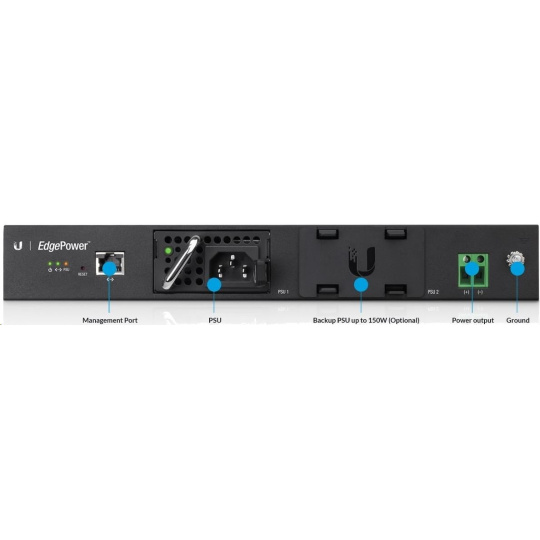 Edgepower je výkonné rackmount napájecí řešení s webovým managementem vhodné pro napájení EdgePoint routerů a switchů. EdgePower obsahuje 2 šachty pro modulární napájecí zdroje, které lze pomocí managementu sloučit (max. výkon 300W) nebo automaticky zálohovat (max. výkon 150W). Napájecí zdroje jsou typu hot-swap a je možné je vyměnit za chodu.