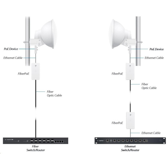 UBNT FiberPOE G2 je cenově dostupný, gigabitový, opticko-metalický, venkovní konvertor, jenž kromě převodu dat z optického vlákna na metalický kabel umí také napájení pomocí PoE. Oproti první generaci zvládne odolat větší většímu rozsahu teplot (-40 až 60°C).