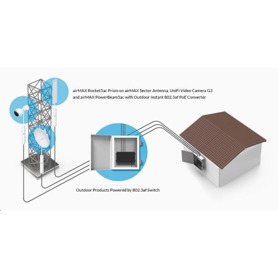 Pomocí tohoto gigabitového konvertoru je možné napájet jednotky UBNT switchem s aktivním PoE dle 802.3af (48V). Konvertor komunikuje se switchem dle 802.3af a do výstupu propouští již klasické pasivní PoE, v tomto případě 24V/0,5A. Lze použít se všemi jednotky od Ubiquity (je kompatibilní i s routerboardy od Mikrotiku).