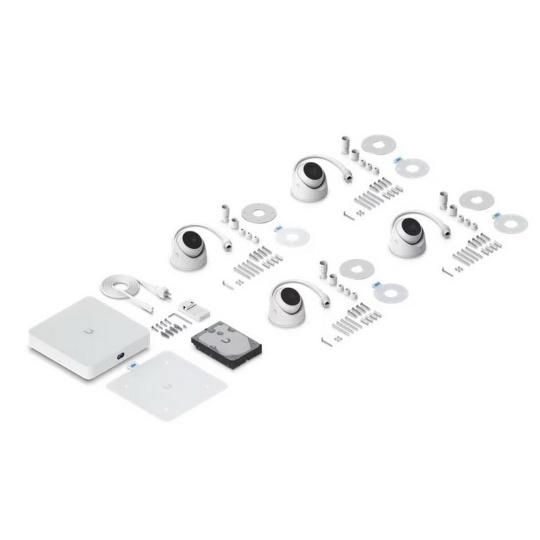 Popis produktu UniFi Protect UNVR-Instant-Kit je prodáván jako kit záznamového zařízení včetně 1TB 3,5'' HDD a 4 ks kamer UVC G5 Turret Ultra. K NVR je možné připojit až 15 kamer v HD rozlišení, 8 kamer s 2K rozlišením nebo 6 kamer ve 4K. NVR je vybaveno gigabitovým uplink portem a 6 gigabitovými porty s podporou PoE napájení 802.3af, které slouží pro připojení kamer. Napájení NVR je ze sítě 230V AC a jeho maximální spotřeba bez připojeného příslušenství a kamer je 9 W. Kamery UVC G5 Turret Ultra s rozlišením 4MP (2688 x 1512) jsou vybaveny fixním objektivem, který má pozorovací úhel 102,4° horizontálně a 54,9° vertikálně. Kamery disponují mikrofonem a 10/100Mbps ethernetovým portem, který slouží i k napájení kamery přes POE 802.3af nebo pasivní POE se vstupním napětím 37 - 57 V DC. Pro noční režim kamera využívá IR přísvit s dosahem 30 m. Maximální spotřeba činí pouze 4 W. Klíčové vlastnosti • UNVR-Instant + 1TB 3.5'' HDD + 4 UVC G5 Turret Ultra • Vše v jednom pro snadnou instalaci • Uložení záznamu na 3.5" pevný disk 1 TB (součást balení) • Možnost montáže kamer na zeď, strop (držák součástí balení) Obsah balení • NVR • (4) kamera UVC G5 Turret Ultra • (1) 3,5" HDD s kapacitou 1 TB • Montážní podložka • Montážní příslušenství Technické parametry Kamera Typ objektivu:Fixní Dosah přísvitu [m]:30 Obrazový senzor ["]:1/2.4 Obraz Rozlišení:4MP Max. rozlišení [pixely]:2688 x 1512 Max. rozlišení kamer pro záznam:8MP Konektory a rozhraní Audio:Mikrofon Rychlost LAN:(7) 10/100/1000Mbps HDMI rozhraní:Ano Napájení Napájení přes PoE:802.3af Typ napájení:Ze sítě (230V) Podporované PoE-Out standardy:802.3af Počet PoE Out portů:6 PoE budget [W]:40 Max. spotřeba energie [W]:4 Fyzické charakteristiky Stupeň krytí:IP66 Provedení:Desktop Použití:Venkovní Tlačítka:Reset Provozní teplota [°C]:0 až 40 Hmotnost [g]:1040 Šířka [mm]:47 Výška [mm]:47 Hloubka [mm]:220 Hardware Počet podporovaných IP kamer:15 Počet podporovaných HDD:1 Obecné Kamerová řada:UniFi Protect.