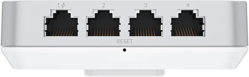 Kromě přívodního Gigabitového portu na zadní straně má také další 4 Gigabitové porty na spodní straně, kdy na prvním z těchto portů je možné využít funkci PoE passthough.