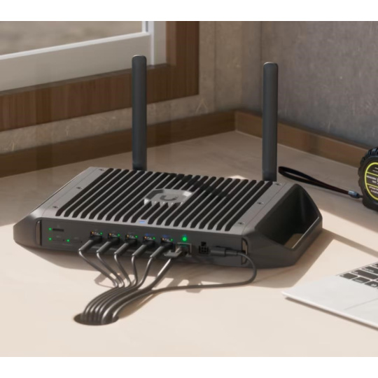 Ruggedized, fanless 10 GbE UniFi Cloud Gateway delivering 350W of total system power for high-density PoE deployments, with advanced routing capabilities and microSD storage for full UniFi application support..