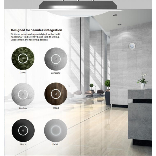 Jako první z rodiny UniFi bude mít tento model volitelné šasi, které bude možné dokoupit a bude na výběr z celkem 6ti různých vzorů - mramor, matná černá, beton, dřevo, tkanina a vojenské maskování.
