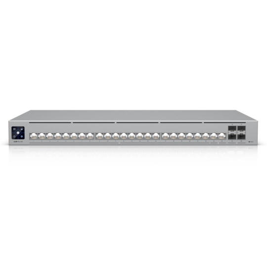 Popis produktu Ubiquiti USW-Pro-HD-24 je 24 portový PoE switch s podporou L3 funkcí. Switch nabízí 22x 2.5Gb a 2x 10Gb porty porty. Dále je switch vybaven 4x SFP+ porty a je připraven i pro redundatní napájení pomocí Ubiquiti UniFi SmartPower Redundant Power System (USP-RPS). Klíčové vlastnosti • 1.3" dotykový displej • 22x 2.5G + 2x 10G ethernet • 4x SFP+ • Možnost redundantního napájení (USP-RPS) • Technologie Etherlighting pro Ethernet i SFP • L3 funkce DHCP/DHCP relay, Inter-VLAN routing, Static routing, Network isolation with ACLs • Správa pomocí aplikace UniFi Network v8.6.9 a novější Obsah balení • Switch • Napájecí kabel 230V • Úchyty do 19" racku • (4) Plovoucí matka • (4) Šroub 10#-32 • (8) Šroub M4 • (4) Gumová samolepicí podložka Technické parametry Konektory a rozhraní Rychlost LAN:(2) 10/5/2.5/1Gbps + (22) 2.5/1Gbps, 100/10Mbps Optické rozhraní:(4) 1G/10Gbps Napájení Typ napájení:Ze sítě (230V) Redundantní napájení:Ano Max. spotřeba energie [W]:50 Napájení přes konektor/svorkovnici:230V AC Fyzické charakteristiky Provedení:Rackmount Ventilátory:Ano Šasi:Kovové Tlačítka:Reset Provozní teplota [°C]:-5 až 40 Šířka [mm]:442 Výška [mm]:44 Hloubka [mm]:285 Obecné Rychlost přepínání [Gbps]:230 Rychlost předávání paketů [Mpps]:171 Software Management:UniFi Network Funkce:L3 Výchozí IP adresa:192.168.1.20, Dynamická z DHCP Výchozí jméno a heslo:ubnt / ubnt.