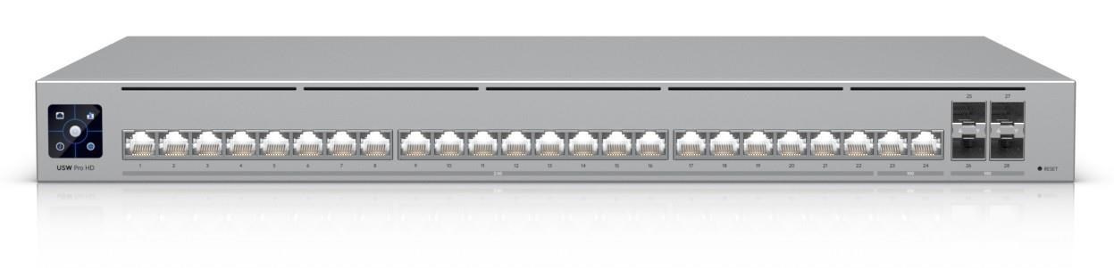 Popis produktu Ubiquiti USW-Pro-HD-24 je 24 portový PoE switch s podporou L3 funkcí. Switch nabízí 22x 2.5Gb a 2x 10Gb porty porty. Dále je switch vybaven 4x SFP+ porty a je připraven i pro redundatní napájení pomocí Ubiquiti UniFi SmartPower Redundant Power System (USP-RPS). Klíčové vlastnosti • 1.3" dotykový displej • 22x 2.5G + 2x 10G ethernet • 4x SFP+ • Možnost redundantního napájení (USP-RPS) • Technologie Etherlighting pro Ethernet i SFP • L3 funkce DHCP/DHCP relay, Inter-VLAN routing, Static routing, Network isolation with ACLs • Správa pomocí aplikace UniFi Network v8.6.9 a novější Obsah balení • Switch • Napájecí kabel 230V • Úchyty do 19" racku • (4) Plovoucí matka • (4) Šroub 10#-32 • (8) Šroub M4 • (4) Gumová samolepicí podložka Technické parametry Konektory a rozhraní Rychlost LAN:(2) 10/5/2.5/1Gbps + (22) 2.5/1Gbps, 100/10Mbps Optické rozhraní:(4) 1G/10Gbps Napájení Typ napájení:Ze sítě (230V) Redundantní napájení:Ano Max. spotřeba energie [W]:50 Napájení přes konektor/svorkovnici:230V AC Fyzické charakteristiky Provedení:Rackmount Ventilátory:Ano Šasi:Kovové Tlačítka:Reset Provozní teplota [°C]:-5 až 40 Šířka [mm]:442 Výška [mm]:44 Hloubka [mm]:285 Obecné Rychlost přepínání [Gbps]:230 Rychlost předávání paketů [Mpps]:171 Software Management:UniFi Network Funkce:L3 Výchozí IP adresa:192.168.1.20, Dynamická z DHCP Výchozí jméno a heslo:ubnt / ubnt.