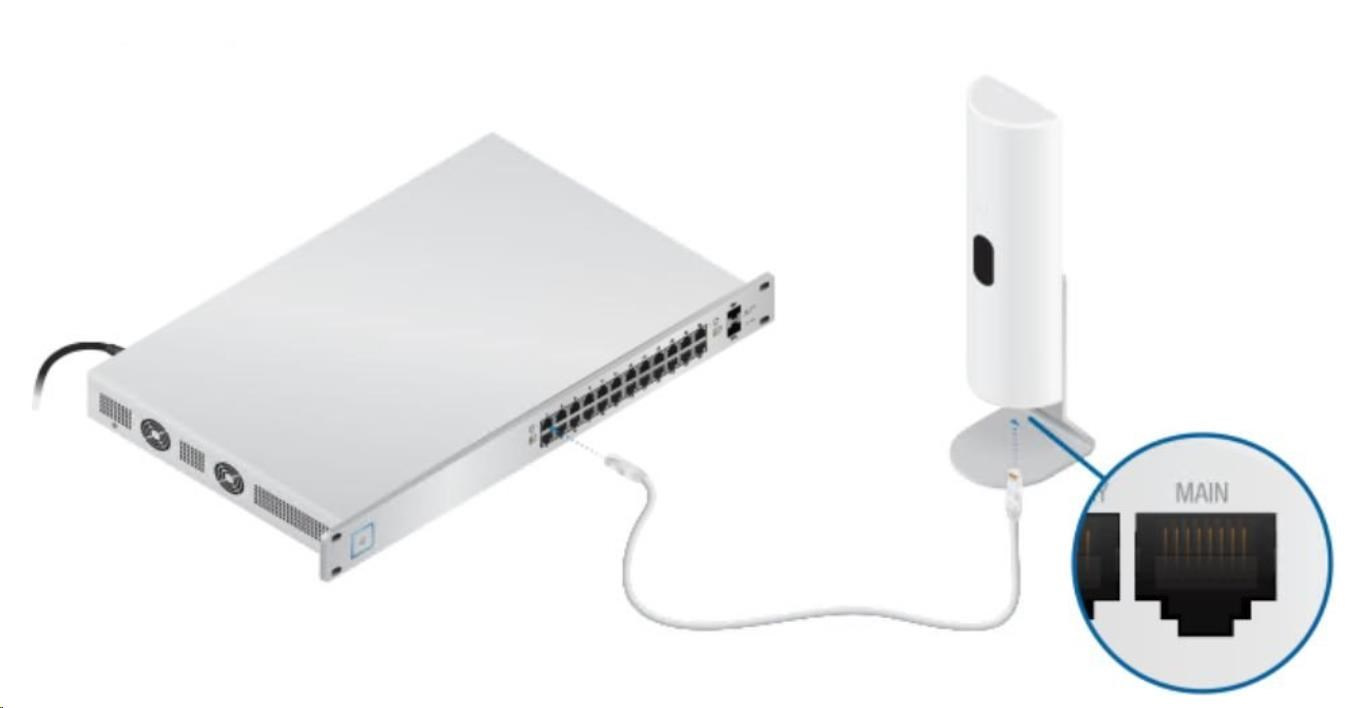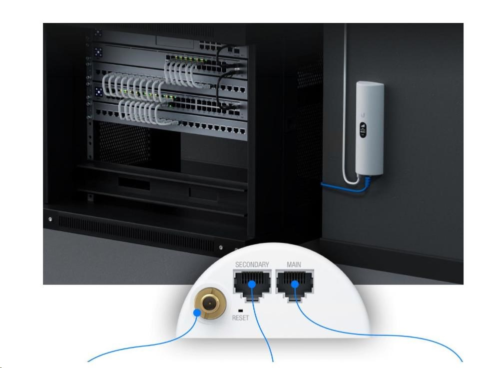 Ubiquiti U-LTE-Pro můžete umístit kamkoliv na místo, kde je nejlepší signál, protože jej lze napájet 802.3at PoE+ z přepínače např. jako je UniFI PoE Switch. Můžete jej připevnit na zeď pomocí montážního držáku nebo máte možnost lepení a upevnění na plochu. Zařízení má sekundární port, který nabízí přemostění a pasivní průchod PoE (užitečné pro kameru, přístupový bod nebo jiné zařízení).