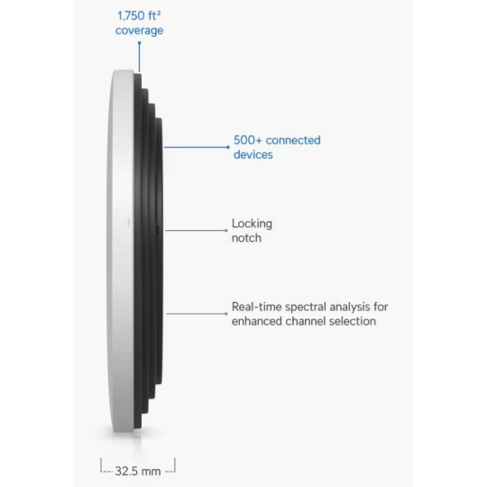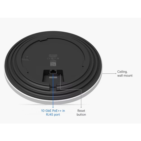 Popis produktu Ubiquiti U7 Pro XGS je nový WiFi 7 UniFi AP. Jedná se o tri-band access point s rychlostí přenosu 5,8Gbps v pásmu 6GHz, až 8,6Gbps v 5GHz pásmu a až 688 Mbps v pásmu 2,4GHz a pokročilým šifrováním WPA3. U7-Pro-XGS je určeno k WiFi pokrytí vaší domácnosti, kanceláře, hotelových prostor nebo skladu s podporou až 500+ připojených klientů. Plná podpora roamingu zajišťuje plynulé předávání připojených klientů mezi jednotlivými AP. Pro připojení do sítě je AP vybaveno 10G ETH portem, který slouží i pro napájení pomocí PoE 802.3at nebo pasivním PoE v rozsahu 42,5-57V DC, PoE injektor není součástí balení. Výhody UniFi řešení • Roaming - přechod mezi jednotlivými AP bez výpadků • Wireless uplink – ideální pro místa, kam nelze přivést datový kabel • Až 8 SSID • Detailní statistiky provozu • Guest síť • Load balancing - udržování rovnoměné zátěže / přepínání klientů • Omezování rychlosti pro každé SSID Obsah balení • Zařízení • Kit k přichycení na strop • Sada šroubků Technické parametry Bezdrátové vlastnosti Bezdrátové frekvence:2.4 + 5 + 6 GHz (triple band) WiFi standardy:802.11n, 802.11a, 802.11ac, 802.11b/g, 802.11ax, 802.11be MU-MIMO:Ano Přenosová rychlost - 5GHz [Mb/s]:8600 Přenosová rychlost - 2.4GHz [Mb/s]:688 Přenosová rychlost - 6GHz [Mb/s]:5800 Vysílací výkon 2.4GHz [dBm]:23 Vysílací výkon 5GHz [dBm]:29 Vysílací výkon 6GHz [dBm]:24 Šifrování:WPA, WPA2, WPA3 2.4GHz MIMO:2 x 2 5GHz MIMO:4 x 4 6GHz MIMO:2 x 2 Typ antény:Vestavěná Počet vestavěných antén:8 Roaming:Ano Zisk antény [dBi]:6, 4 Konektory a rozhraní Rychlost LAN:(1) 100M/1G/2.5G/5G/10G Gigabit LAN:Ano Napájení Napájení přes PoE:802.3at, 42 .. 57V DC Typy PoE:PoE-In (pouze) Max. spotřeba energie [W]:29 Fyzické charakteristiky Použití:Vnitřní Tlačítka:Reset Provozní teplota [°C]:-30 až 40 Hmotnost [g]:800 Šířka [mm]:215 Výška [mm]:215 Hloubka [mm]:33 Software Operační mód:Access Point Výchozí IP adresa:192.168.1.20, Dynamická z DHCP.