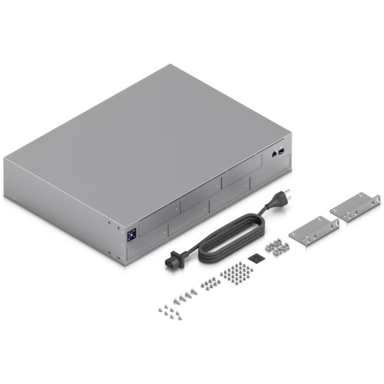 Popis produktu NAS pro montáž do 2U racku disponující 7x 2,5/3,5" pozicemi pro disk, jedním Gbe RJ-45 portem a jedním 10G SFP+ portem pro uplink. Vhodný pro ukládání velkých souborů. Poháněn je čtřjádrovým procesorem ARM Crotex-A57 pracující na frekvenci 1,7 GHz, který je doplněný o 8 GB operační paměti. • (1) 10G SFP+ uplink a (1) GbE RJ-45 port • Ochrana dat pomocí technologie úložiště RAID • Připraveno na zálohování napájení UniFi • 1,3" dotykový displej pro správu • Podpora bluetooth 4.1 • Max. příkon 135 W Obsah balení • Zařízení • Napájecí kabel • Příslušenství pro montáž do racku Technické parametry Konektory a rozhraní Počet slotů pro HDD:7 Rychlost LAN:(1) 10/100/1000Mbps Gigabit LAN:Ano Optické rozhraní:(1) 1/10Gbps Ostatní:Dotykový displej, Bluetooth Napájení Typ napájení:Ze sítě (230V), UniFi SmartPower RPS Redundantní napájení:Ano Max. spotřeba energie [W]:160 Napájení přes konektor/svorkovnici:230V AC Fyzické charakteristiky Provedení:Rackmount Materiál:Zinek, Ocel Počet "U" pozic:2 Provozní teplota [°C]:-5 až 40 Hmotnost [kg]:9,5 Šířka [mm]:442 Výška [mm]:87 Hloubka [mm]:325 Hardware Podporovaná kapacita HDD [TB]:16 CPU:ARM Cortex-A57 Software Úroveň RAID:1 - mirroring, 5 - striping, 10 - mirroring.