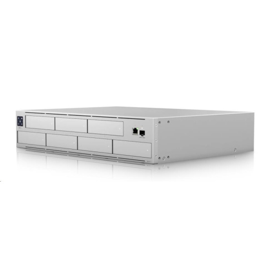 Kamerový síťový rekordér UNVR-Pro je 2U Rackmount NVR zařízení od Ubiquiti Networks s předinstalovanou aplikací UniFi Protect pro nahrávání kamer UVC od Ubiquiti Networks. NVR má výkon pro nahrávání až 60 kamer ve FullHD rozlišení nebo 20 kamer ve 4k rozlišení a uchováním záznamu po dobu 60 dnů. NVR podporuje až 7 diskových pozic pro SSD/HDD s maximální kapacitou 16TB/disk, popdoruje RAID 1 / 5 / 10 pro vyšší spolehlivost uchování dat, má 3" dotykový displej, který s pozdější verzí bude umožňovat i náhled videa, Gigabit LAN port, SFP+ port s podporou rychlostí 1 G/10 Gbps a redundantní napájení pomocí UniFi SmartPower (USP-RPS).