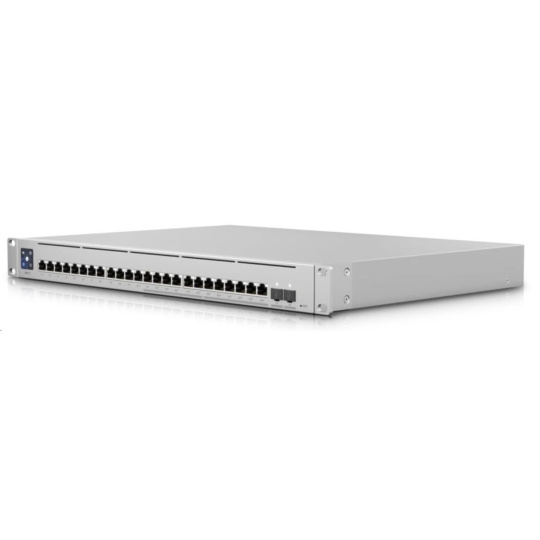 UniFi Switch Enterprise 24 PoE je spolehlivý managovatelný 2.5-Gigabitový L3 Switch s kapacitou přepínání 124 Gbps, (12) 2.5-Gigabit LAN porty, dalšími (12) Gigabit LAN porty a dvěmi SFP+ (10Gbps) šachtami. Všechny ethernetové porty podporují 802.3af/at PoE-Out s výstupním výkonem 30W/port a celkovým PoE Budgetem 400W. Switch má kromě standardní výbavy také 1,3" dotykovým displej pro poskytování informací o systému, teplotě, statistice portů, PoE napájení a mnoho dalšího. Switch lze napájet standardně přes 230V ale také přes UniFi SmartPower RPS, který slouží spíše k zálohování napájení v případě selhání interního zdroje.
