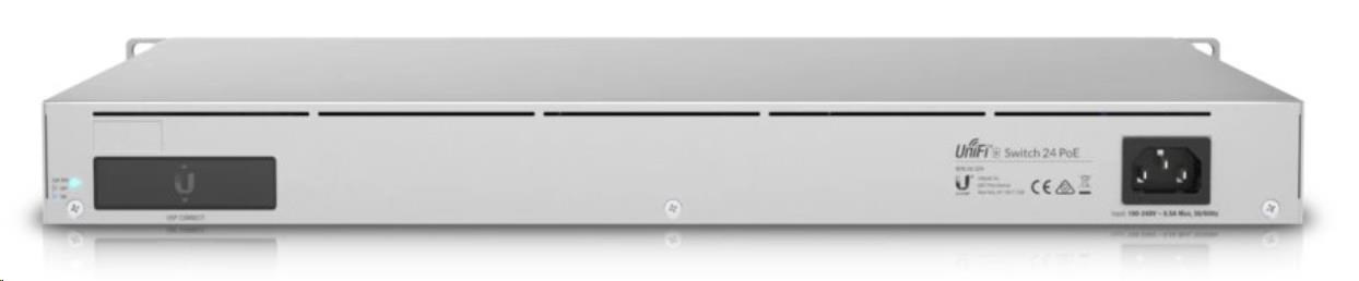 UniFi Switch Enterprise 24 PoE je spolehlivý managovatelný 2.5-Gigabitový L3 Switch s kapacitou přepínání 124 Gbps, (12) 2.5-Gigabit LAN porty, dalšími (12) Gigabit LAN porty a dvěmi SFP+ (10Gbps) šachtami. Všechny ethernetové porty podporují 802.3af/at PoE-Out s výstupním výkonem 30W/port a celkovým PoE Budgetem 400W. Switch má kromě standardní výbavy také 1,3" dotykovým displej pro poskytování informací o systému, teplotě, statistice portů, PoE napájení a mnoho dalšího. Switch lze napájet standardně přes 230V ale také přes UniFi SmartPower RPS, který slouží spíše k zálohování napájení v případě selhání interního zdroje.