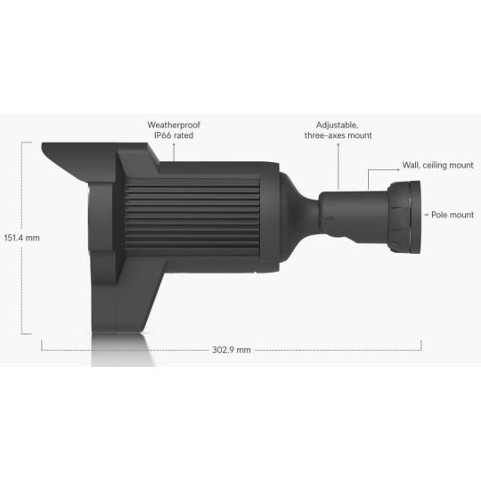 Popis produktu Nová AI kamera od Ubiquiti specializovaná pro rozpoznávání SPZ vozidel pohybujících se rychlostí až 90 km/h. Kamera má 1/1,8'' snímač s rozlišením 8MP (4K 3840 x 2160), 3x optickým zoomem a IR přísvitem do vzdálenosti 15m. Ohnisková vzdálenost objektivu 4,1-12,3mm zajišťuje pozorovací úhel kamery 35°-109,9°. Kamera je vybavena 1x gigabitovým portem, který slouží zároveň k napájení kamery pomocí PoE+ 802.3at. Maximální spotřeba kamery je 25,5W. Kryt kamery je v odolném provedení IP66 s odolností proti nárazu IK04. Pro nahrávání audio stopy je zde integrovaný mikrofon a díky AI disponuje kamera pokročilými funkcemi, detekcemi a rozpoznávání objektů. Klíčové vlastnosti • 8MP snímač 1/1,8'' s rozlišením 4K 3840x2160 při 30fps • 3x optický zoom • IR přísvit až 15m • LPR - rozpoznávání SPZ vozidel až do ryhclosti 90km/h • krytí IP66 a odolnost IK04 Obsah balení • Kamera • Držák • Voděodolná průchodka • Kovová spona • Šrouby a hmoždinky Technické parametry Kamera Typ objektivu:Varifokální - motorický Objektiv [mm]:4,1 až 12,3 (nastavitelný) Přísvit:IR Dosah přísvitu [m]:15 Pozorovací úhel [°]:35 až 110 Režim den/noc:IR cut filtr Obrazový senzor ["]:1/1.8 Obraz Rozlišení:8MP Max. rozlišení [pixely]:3840 x 2160 (4K UHD) Konektory a rozhraní Slot na paměťové karty:Ano Audio:Mikrofon Rychlost LAN:(1) 10/100/1000Mbps Napájení Napájení přes PoE:802.3at Typ napájení:PoE Max. spotřeba energie [W]:25,5 Fyzické charakteristiky Stupeň krytí:IP66 Použití:Venkovní Antivandal (ochrana proti nárazu):IK4 Tlačítka:Reset Provozní teplota [°C]:-20 až 50 Hmotnost [g]:1500 Šířka [mm]:130 Výška [mm]:151 Hloubka [mm]:303 Barva:Černá Obecné Technologie a vymoženosti:Čtení SPZ.
