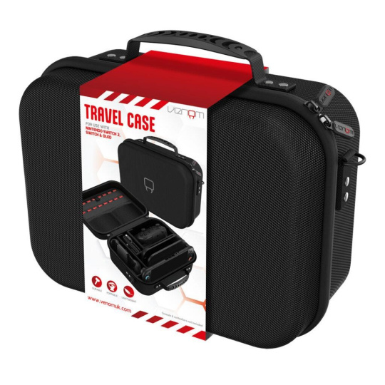 Take your Switch 2, dock and accessories everywhere whilst also keeping them safe and secure with the Venom Nintendo Switch Travel Case.  Case includes inserts designed to offer the perfect snug fit for your console and its accessories whilst out and about.  Features: • Universal fit for Nintendo Switch 2, Switch and OLED. • Robust outer shell to protect from bumps and scratches. • Internal foam to fit perfectly around your console, dock and accessories. • Reinforced carry handle and adjustable shoulder strap. • Mesh pocket for additional accessories..