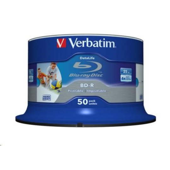 VERBATIM BD-R SL Datalife (50-pack)Blu-Ray/Spindle/6x/25GB WHITE BLUE SURFACE