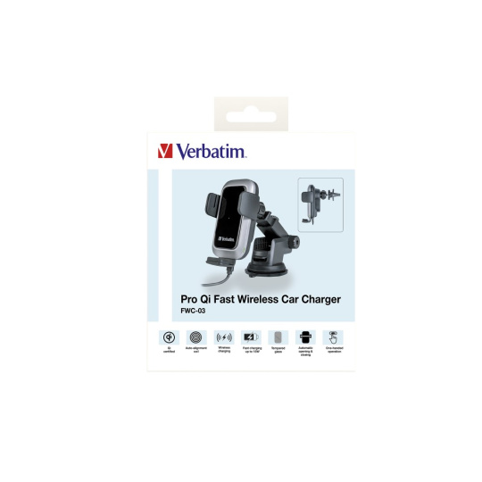VERBATIM Držák do Auta Bezdrátová rychlonabíječka Pro Qi 15W FWC-03