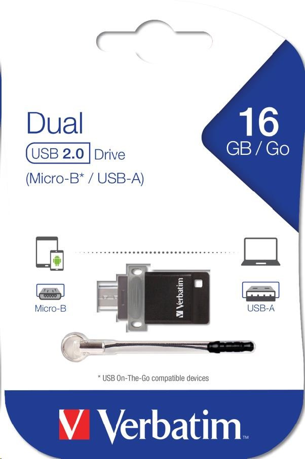 VERBATIM Dual USB Drive 16 GB - OTG/USB 2.0 for Smarphones & Tablets