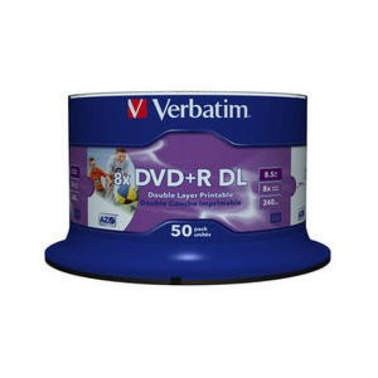 VERBATIM DVD+R(50-pack)DoubleLayer/Spindle/8X/8.5GB/Printable/NoID