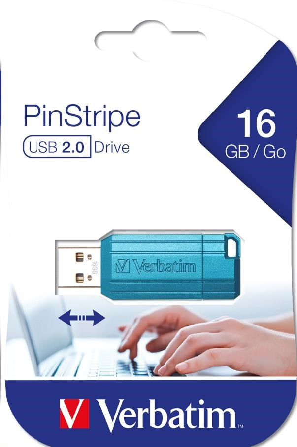 VERBATIM Flash Disk 16GB Hi-Speed Store 'n' Go, Pinstripe, USB 2.0, Caribbean modrá