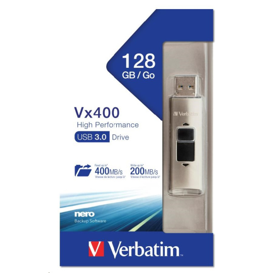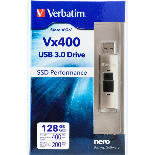VERBATIM Flash Drive 128GB Store 'n' Go, SSD Vx400, USB 3.0, stříbrná