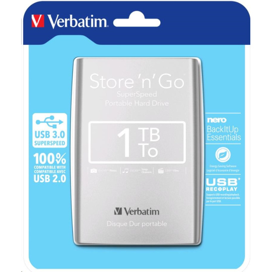 VERBATIM Externí HDD 1TB Store 'n' Go USB 3.0 , stříbrný
