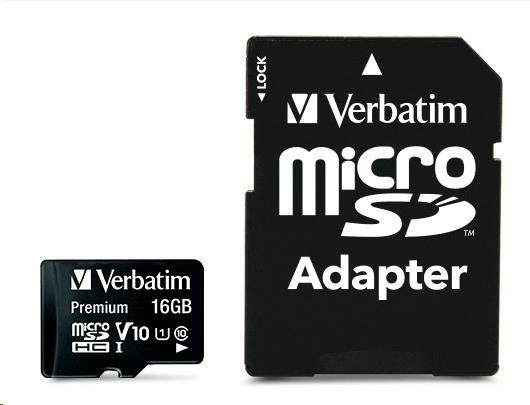 VERBATIM MicroSDHC karta 16GB Premium, U1 + SD adaptér