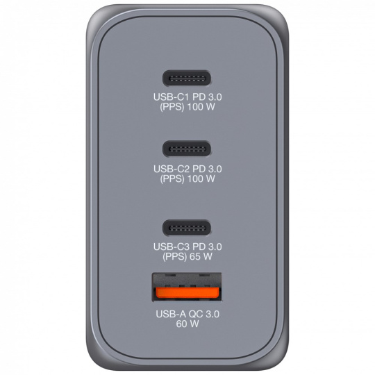 | Výkon | USB-C1 Max 100W USB-C2 Max 100W USB-C3 Max 65W USB-A Max 60W Dohromady Max 189W  |