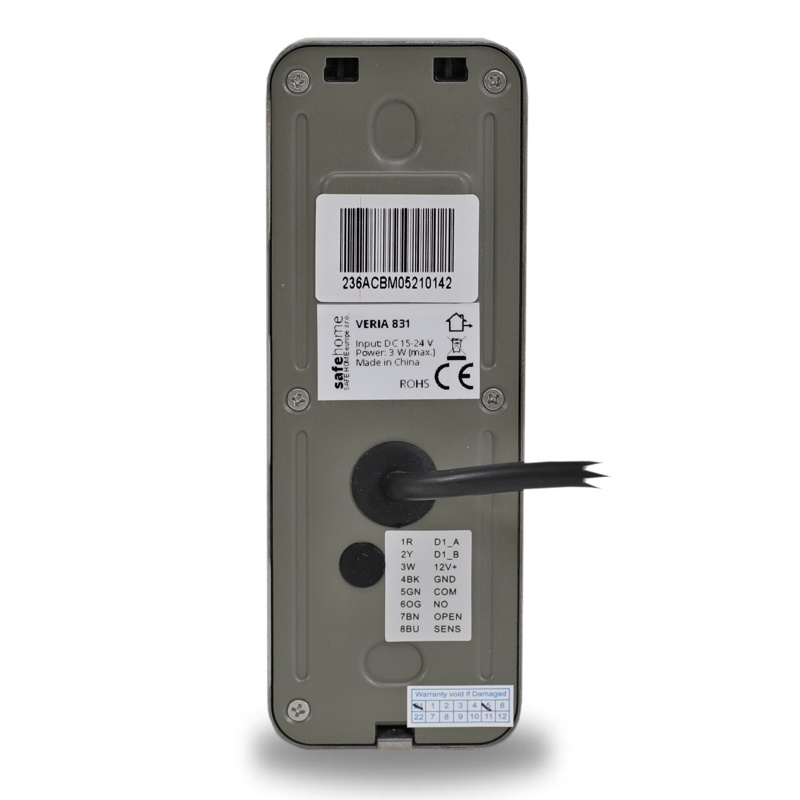 Vstupní barevná kamerová jednotka videotelefonu VERIA 831 v elegantním anti-vandal provedení je určená pro 2-vodičové systémy videotelefonů VERIA 2-WIRE.