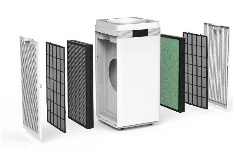 - 2x 4 stupňová filtrace včetně ™?HEPA filtrace a filtrační vrstvy studeného katalyzátoru, který účinně rozkládá organické sloučeniny a toxické látky, stejně jako UV lampa.