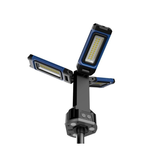 | Režim ovládání: | Rozložte pracovní světlo a postavte jej. Stisknutím vypínače ON/OFF aktivujete světlo a následně jednotlivými stisknutími přepínáte mezi jednotlivými světelnými módy až do případného vypnutí. Stisknutím vypínače ON/OFF (ikona slunce/ikona světla) upravujete barvu světla. Hlavici světla lze dle potřeby odmontovat. |