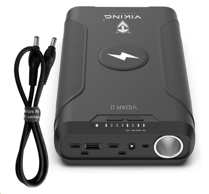 Powerbanka Viking VIDAR II je spolehlivý pomocník pro každého, kdo potřebuje mít energii vždy po ruce – ať už na vícedenním kempování, při práci v terénu nebo na cestách. S kapacitou 72000 mAh, kompaktními rozměry a širokým výběrem výstupů pohodlně nabijete více zařízení současně – od mobilních telefonů přes notebooky až po 12V spotřebiče.