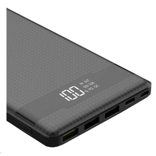 3x vstupní porty Vám zajistí nabíjení powerbanky jakýmkoliv kabelem. Powerbanka podporuje vlastní rychlonabíjení přes USB-C a micro USB a to až 12V!. K nabíjení slouží i Apple Lightning konektor