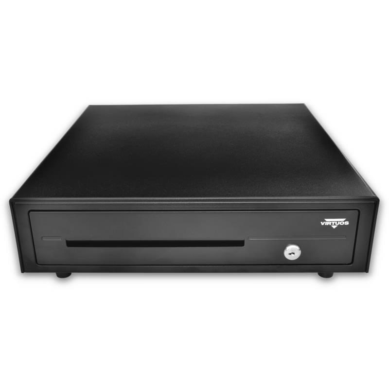 Virtuos pokladní zásuvka C420D - s kabelem, kovové držáky, 9-24V, černá
