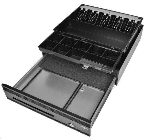 Virtuos pokladní zásuvka C425D-Luxe - kulič. pojezdy, kabel, 9-24V, černá