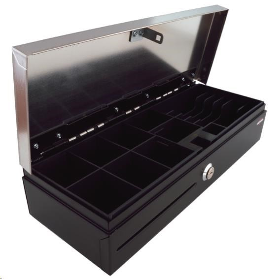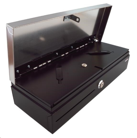 Virtuos pokladní zásuvka flip-top FT-460C2 - s kabelem, se zamykacím krytem, NEREZ víko, černá