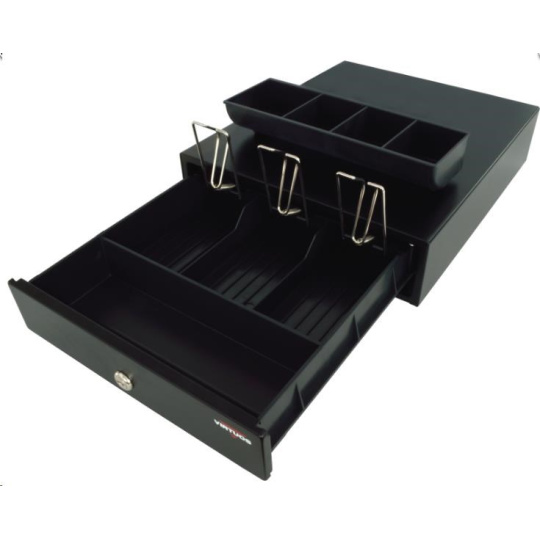 Virtuos pokladní zásuvka mikro EK-300C, 9V-24V, s kabelem 24V, pořadač 3/4, černá