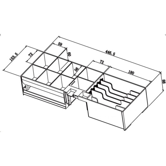 •Vyjímatelný pořadač na bankovky (nastavitelný) a mince