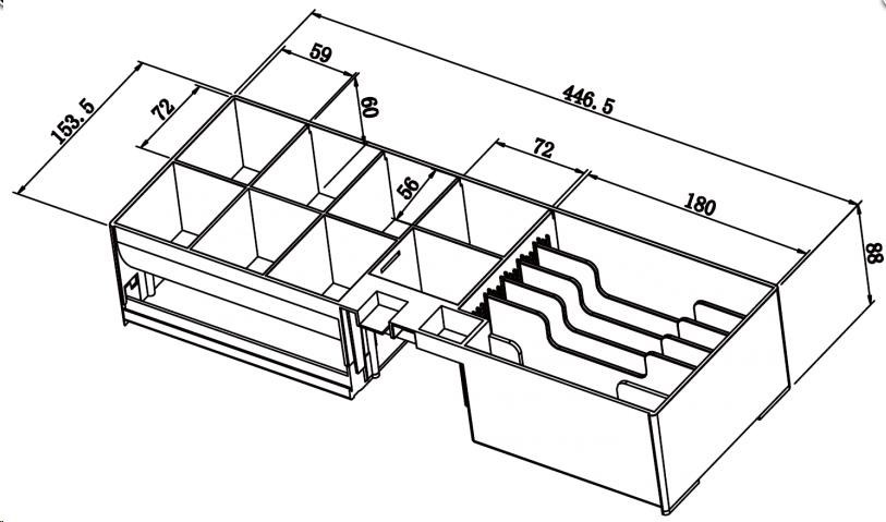 •Vkládání bankovek a šeků bez otevření zásuvky - přední štěrbinou