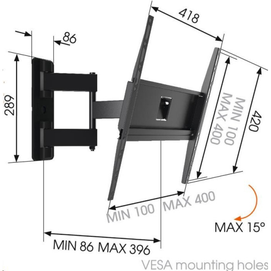 Spolehlivý držák s dvojitým ramenem a 3 klouby