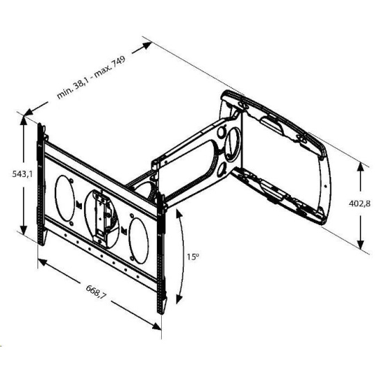 - možnost odtáhnout TV až na vzdálenost 76 cm od stěny