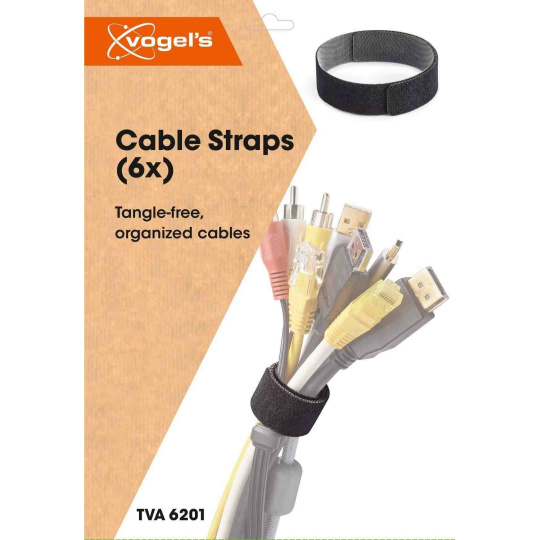 V ideálním případě byste měli kabely svázat dohromady a vést je skrytě před zraky. Společnost Vogel's k tomu nabízí řadu praktických řešení. Pomocí těchto stahovacích pásků se suchým zipem můžete kabely svázat pevně a bezpečně dohromady. Sada stahovacích pásků TVA 6201 se skládá ze šesti stahovacích pásků o délce 30 cm a šířce 2 cm.