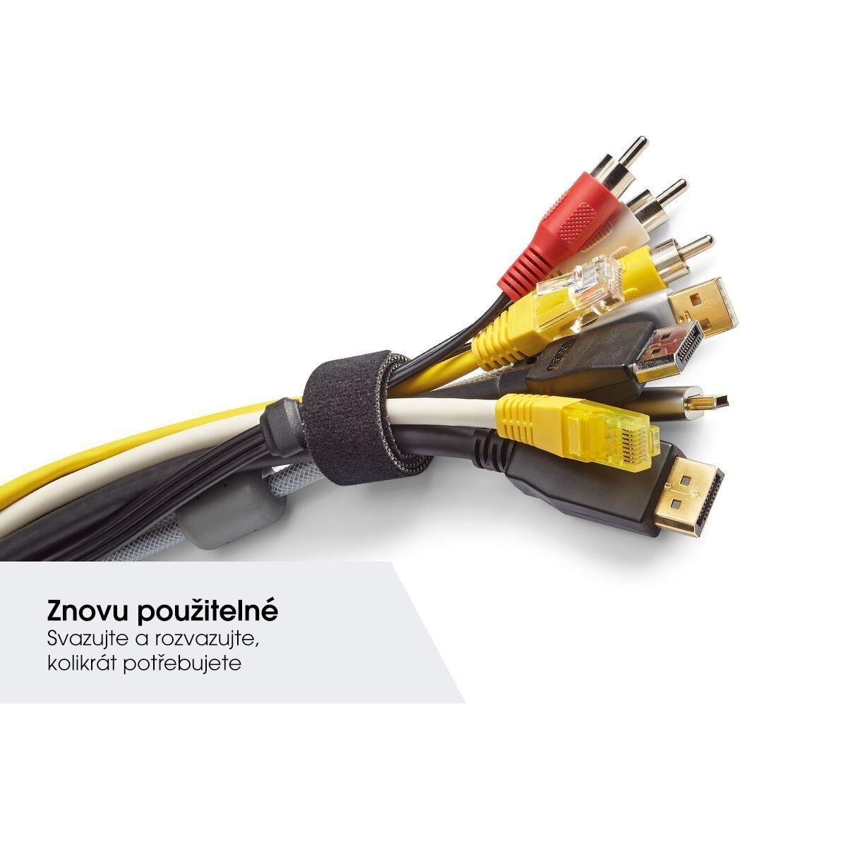 Protože jsou tyto kabelové stahovací pásky vybaveny suchým zipem, snadno se používají a to opakovaně. Není problém kabely do svazku přidávat, ubírat, měnit je nebo úplně reorganizovat. Pásky jsou vždy připraveny k okamžitému použití, spoj je pevný a časem se neuvolňuje.