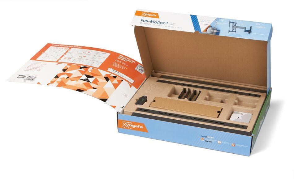 Společnost Vogel's vám maximálně usnadní instalaci držáku. Balení obsahuje vrtací šablonu, šrouby, hmoždinky Fischer® DuoPower, stahovací pásky na kabely a vodováhu. Pomocí naší bezplatné aplikace DrillRight™ AR App si snadno vyznačíte první vrtací otvor a pokyny k instalaci najdete ve stručném průvodci instalací. Nebo si prohlédněte podrobný návod či speciální instalační video online.