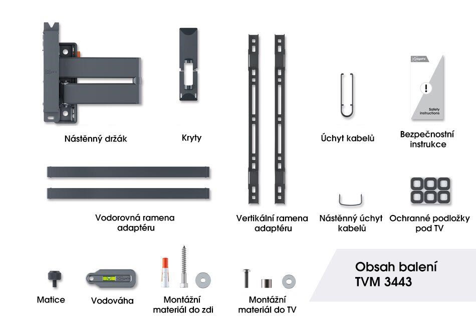 Jedním prstem můžete televizor přesunout do požadované polohy. Nástěnný držák TVM 3443 je vybaven funkcí One-Finger™ Movement. Díky speciálním ložiskům je pohyb nástěnného držáku velmi plynulý a lehký. Pro bezpečné naklápění a fixaci televizoru je držák vybaven jedinečným systémem TiltAnchor™, který uzamkne náklon TV ve svislé poloze.
