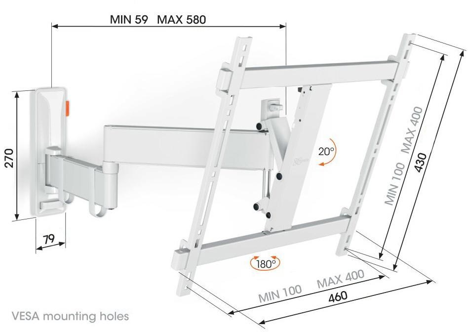 - Otočte televizor až o 180° díky 58 cm dlouhým ramenům