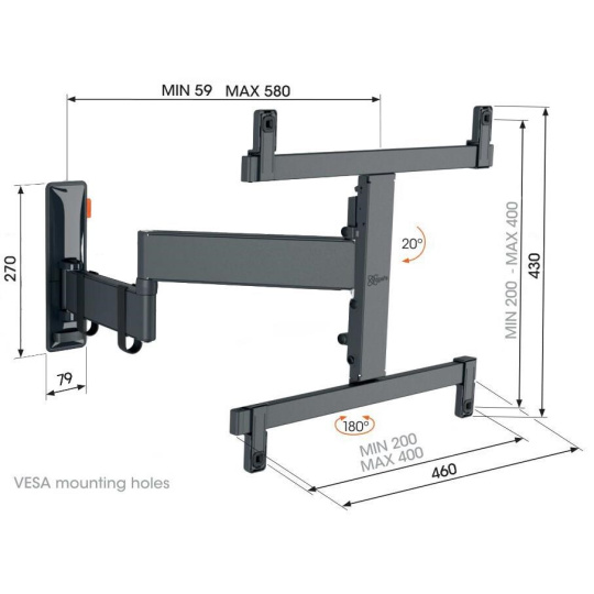 - Otočte televizor až o 180° díky 58 cm dlouhým ramenům