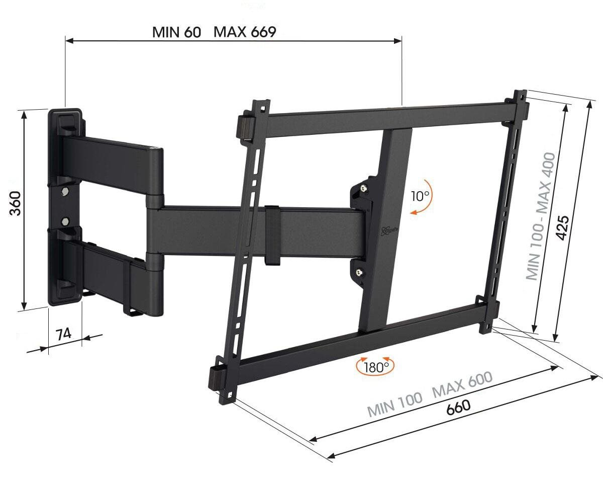 - Otočte televizor až o 180° díky 67 cm dlouhým ramenům