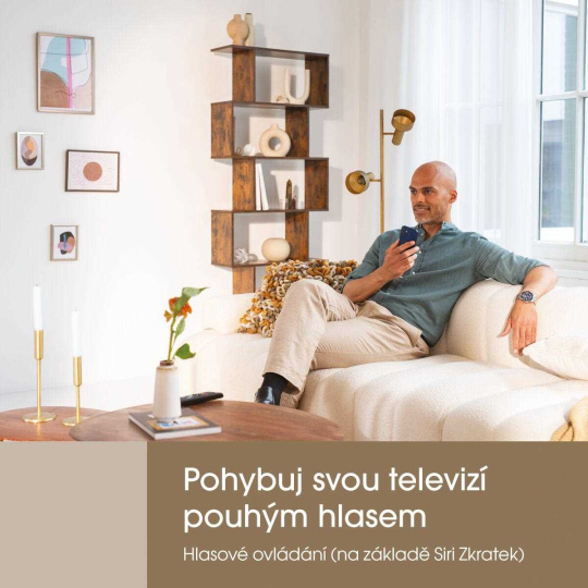 - Automatický pohyb při zapnutí TV, ovládání pomocí hlasových zkratek Siri, aplikace nebo dálkového ovládání.